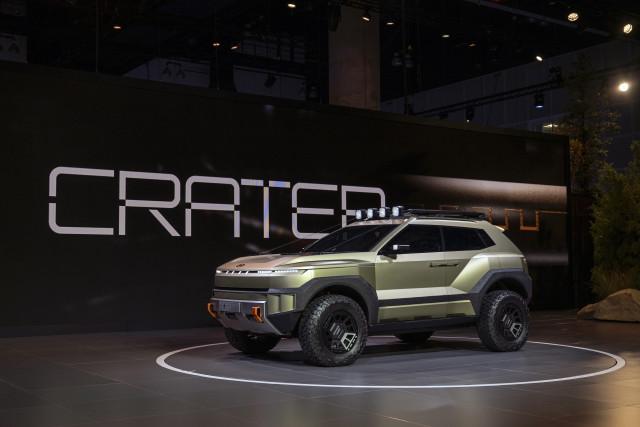 크레이터는 경사로 주행 시 차체 손상을 최소화하기 위한 접근각·이탈각 확보, 하부 보호판과 측면 보호 패널, 육각형 입체 휠 등 견고함을 강조한 요소를 대거 반영했다.