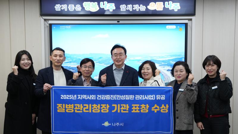 28일 나주시에 따르면 보건소 건강증진과는 2025년 호남권 만성질환 관리사업 ‘지역사회 건강증진’ 분야에서 우수 유공기관으로 선정돼 질병관리청장 표창을 수상했다.
