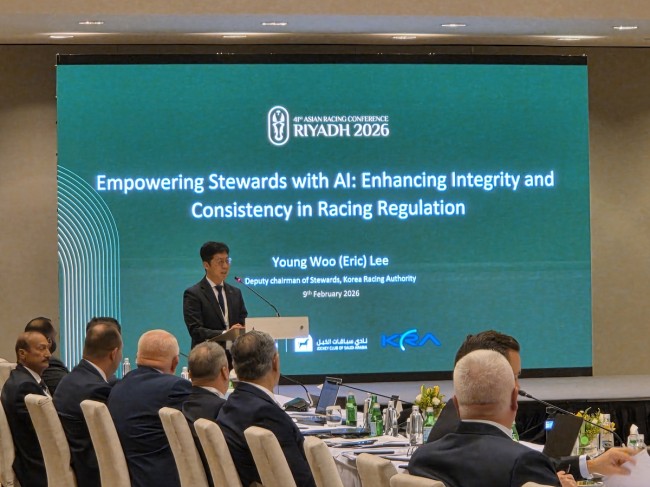 한국마사회는 지난 9일 사우디아라비아 리야드에서 열린 제14회 국제경마심판회의(International Stewards' Conference)에서 '한국 경마 심판분야 AI 적용 사례'를 발표했다고 밝혔다.