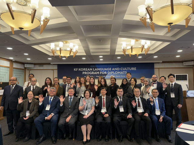 4월 6일 ‘2026 KF 외교관 한국언어문화연수’ 환영식에서 참석자들이 기념사진을 촬영하고 있다