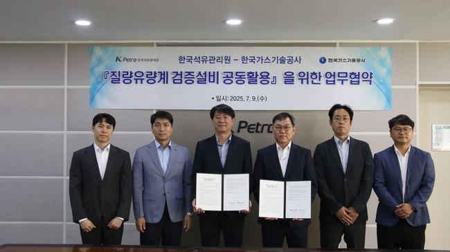 한국석유관리원(이하 '석유관리원')과 한국가스기술공사(이하' 가스기술공사')는 7월 9일 석유관리원 본사(경기도 분당구 소재)에서 '질량유량계 검증설비 공동활용을 위한 업무협약'을 체결했다.