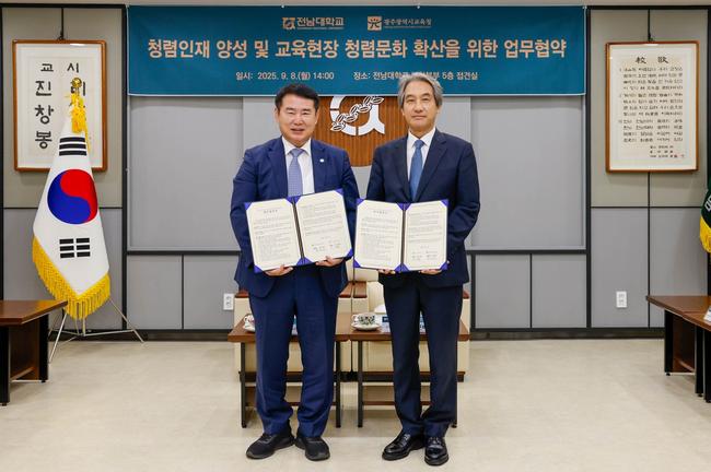 광주시교육청(교육감 이정선)과 전남대학교는 지난 8일 전남대 본부 접견실에서 '청렴 인재 양성과 교육 현장 청렴 문화 확산을 위한 업무협약(MOU)'을 체결했다.
