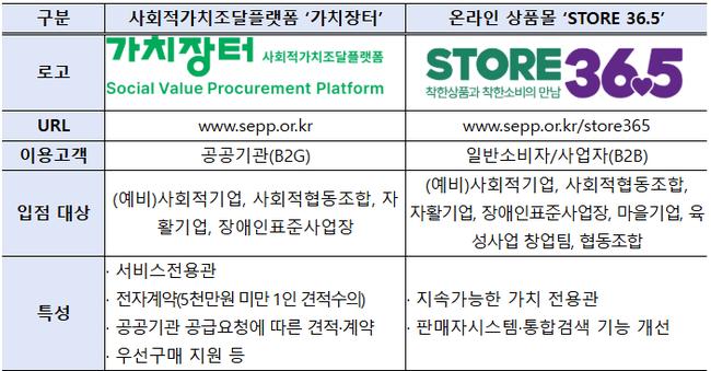 고용노동부와 한국사회적기업진흥원은 8일 사회적가치 조달 플랫폼 ‘가치장터’와 착한소비 온라인몰 ‘스토어(STORE) 36.5’를 새롭게 개통했다고 밝혔다.