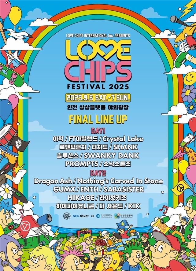 인천광역시(시장 유정복)와 인천관광공사는 오는 9월 6일부터 7일까지 양일간 인천 상상플랫폼 야외광장에서 글로벌 음악축제 '러브칩스 페스티벌 2025'를 개최한다고 밝혔다.