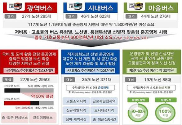 또한 출퇴근 맞춤형 전세버스 48대와 프리미엄 우등버스 21대를 주요 거점에 투입해 혼잡을 완화하고 있으며, 전세버스 1대당 연간 0.62억원이 소요돼 일반 광역버스(1.74억원) 보다 약 64%의 비용 절감 효과를 보이고 있다.