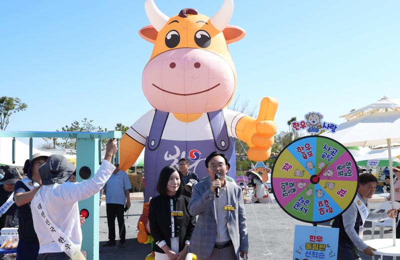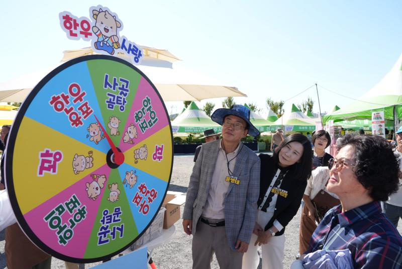 윤병태 나주시장은 11일 ‘2025 나주영산강축제’와 연계해 영산강정원에서 열리고 있는 ‘나주농업페스타’ 행사장을 방문해 농업인들과 함께 한우와 오리, 배 등 나주 특산물 판촉 행사에 참여했다.