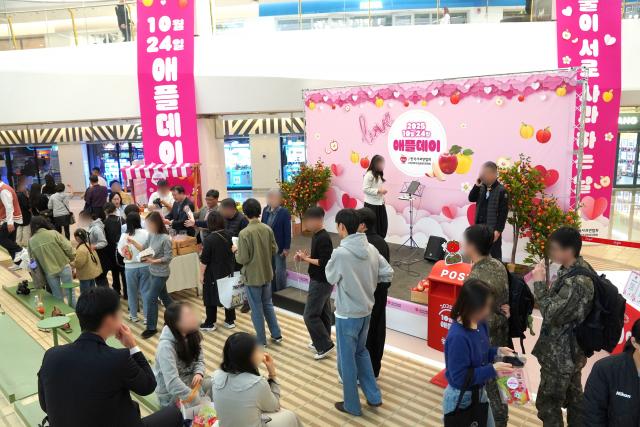 한국사과연합회가 24일 사과를 매개로 진심을 전하는 ‘애플데이’ 행사를 서울 스타필드 코엑스몰 라이브플라자에서 성황리에 진행했다(제공=한국사과연합회)