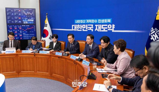 정청래 당대표가 2025.10.24.(금) 국회 본청 당대표회의실에서 열린 최고위원회의를 주재하고 있다.