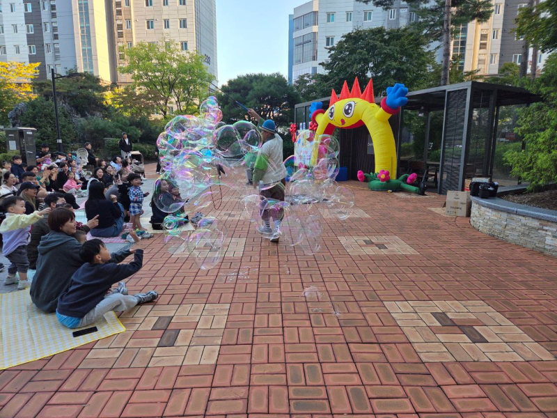 이번 행사는 학부모 아파트 관계자 등 150여명이 참석한가운데 버블쇼 등 어린이들과 학부모들이 즐겁고 하나 될 수 있는 시간으로 구성했다.