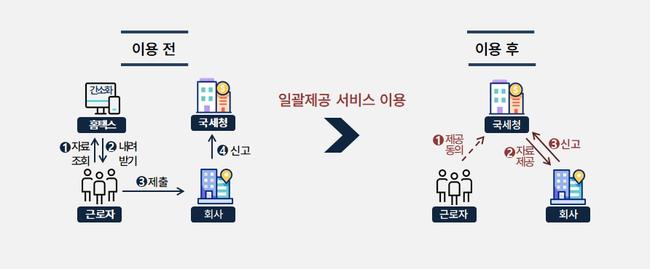 국세청이 21일 연말정산 간소화자료를 회사가 직접 받아 처리하는 ‘간소화자료 일괄제공 서비스’ 신청을 오는 30일까지 접수한다고 밝히며, 근로자와 기업 모두의 연말정산 부담을 크게 줄일 수 있다고 안내했다.