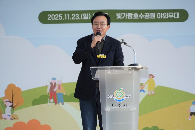 ‘빛가람 건강둘레길 시민걷기 행사, 윤병태 시장이 걷기 행사 인사말 (사진 제공-나주시)
