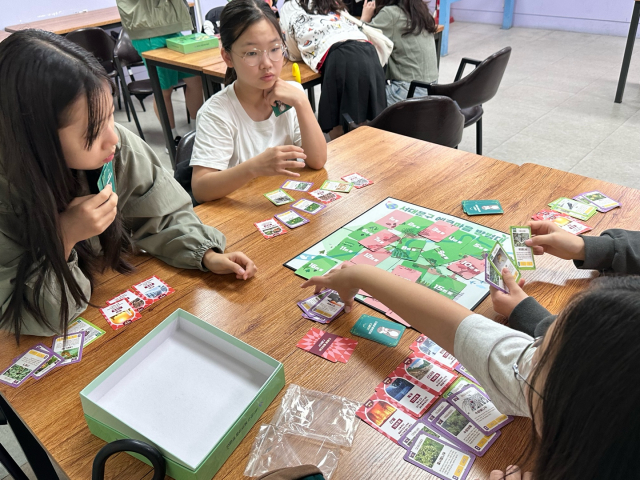 청소년들이 보드게임 ‘서대문구 에코마을방범대’를 즐기고 있다