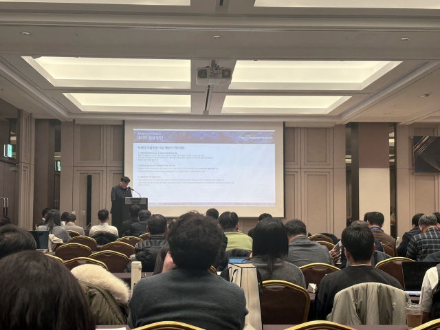 ‘2025년 AI 학습용 데이터 구축 및 고도화 성과 보고회’에서 우수사례 발표 중인 나라지식정보 박영훈 부장