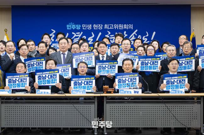 더불어민주당 정청래 당대표는 1월 14일 충남 서산에서 열린 제211차 충남 민생 현장 최고위원회의에서 충남·대전 행정통합 추진 의지를 밝히고, 내란 청산과 검찰개혁을 흔들림 없이 완수하겠다고 강조했다.