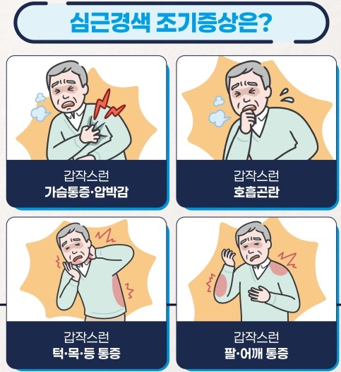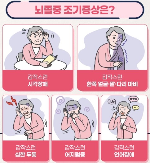 질병관리청에 따르면 증상은 대개 갑작스럽게 나타난다. 뇌졸중의 경우 한쪽 얼굴·팔·다리에 힘이 빠지거나 말이 어눌해지는 증상, 시야 이상, 갑작스러운 어지럼과 심한 두통 등이 대표적이다. 심근경색은 가슴의 심한 통증이나 압박감, 턱·목·등의 통증, 숨 가쁨, 팔·어깨 통증 등이 나타날 수 있다. 이러한 증상이 보이면 환자 스스로 운전하거나 가족을 기다리지 말고 즉시 119를 통해 급성기 치료가 가능한 의료기관으로 이송돼야 한다.