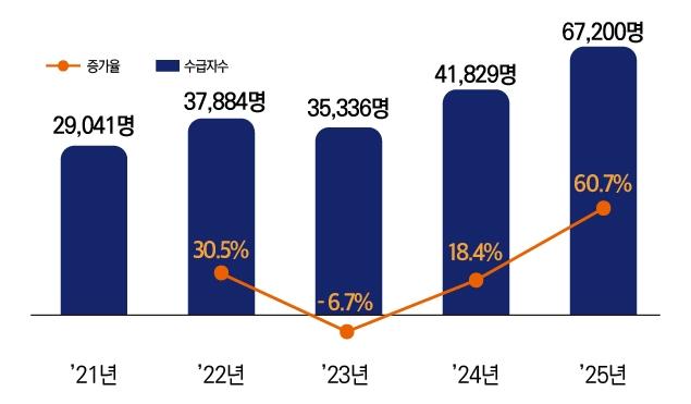 제도 활용 지표는 뚜렷한 증가세를 보였다. 2025년 남성 육아휴직급여 수급자는 6만7,200명으로 전체 수급자의 36.5%를 차지했다. 전년 대비 60.7% 늘어난 수치로, 같은 기간 여성 증가율 29.1%를 크게 웃돌았다. 남성의 돌봄 참여가 구조적으로 확대되는 흐름이다.