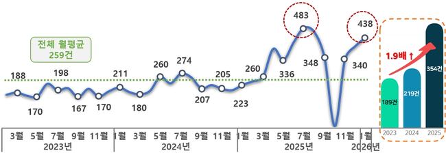 한편, 국민권익위는 지난 1월 한 달간 접수된 전체 민원 빅데이터 동향도 발표했다. 1월 민원 발생량은 약 116만 건으로 전월 123만 건 대비 5.6% 감소했으나, 전년도 1월 98만 건과 비교하면 18.1% 증가했다.