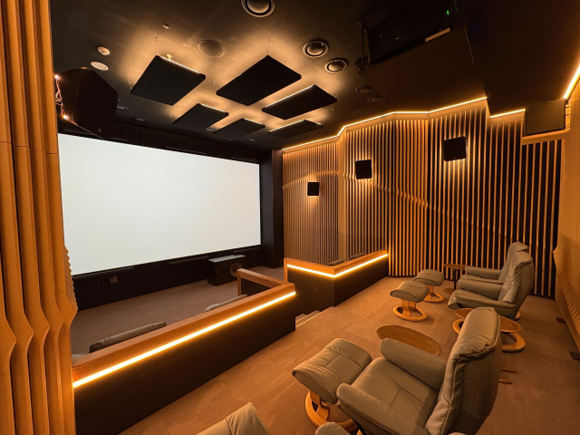 방배 래미안 원페를라에 적용된 모노플렉스 커뮤니티 시네마는 15.2ch 입체음향 시스템을 갖춘 상영관으로 구성돼 일반적인 커뮤니티 영화관을 넘어선 몰입도 높은 관람 환경을 제공한다. 좌·우 채널 중심의 기존 사운드 구조에서 벗어나 공간 전반을 감싸는 입체 음향 설계를 통해 실제 상업 영화관 이상의 사운드 경험을 구현했다.